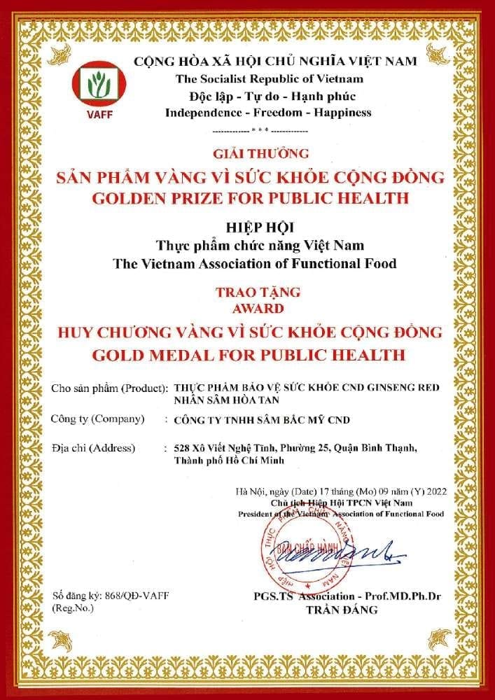 🥇Sản phẩm đạt Huy chương vàng vì sức khỏe cộng đồng