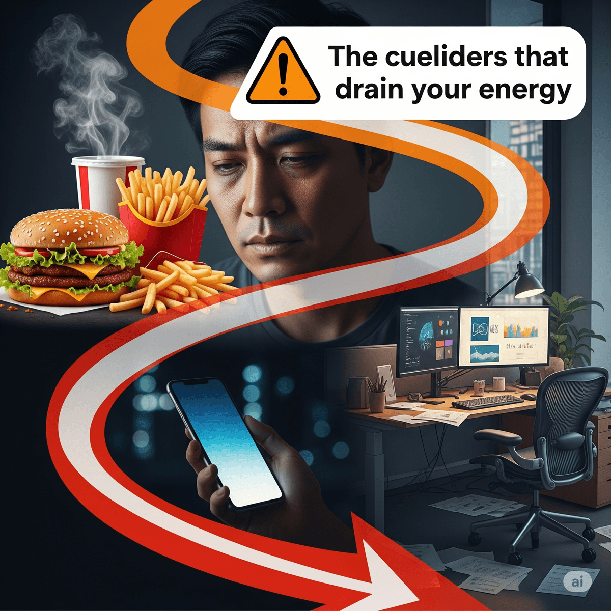 ❌ Sinh hoạt thất thường, áp lực công việc → giảm năng lượng